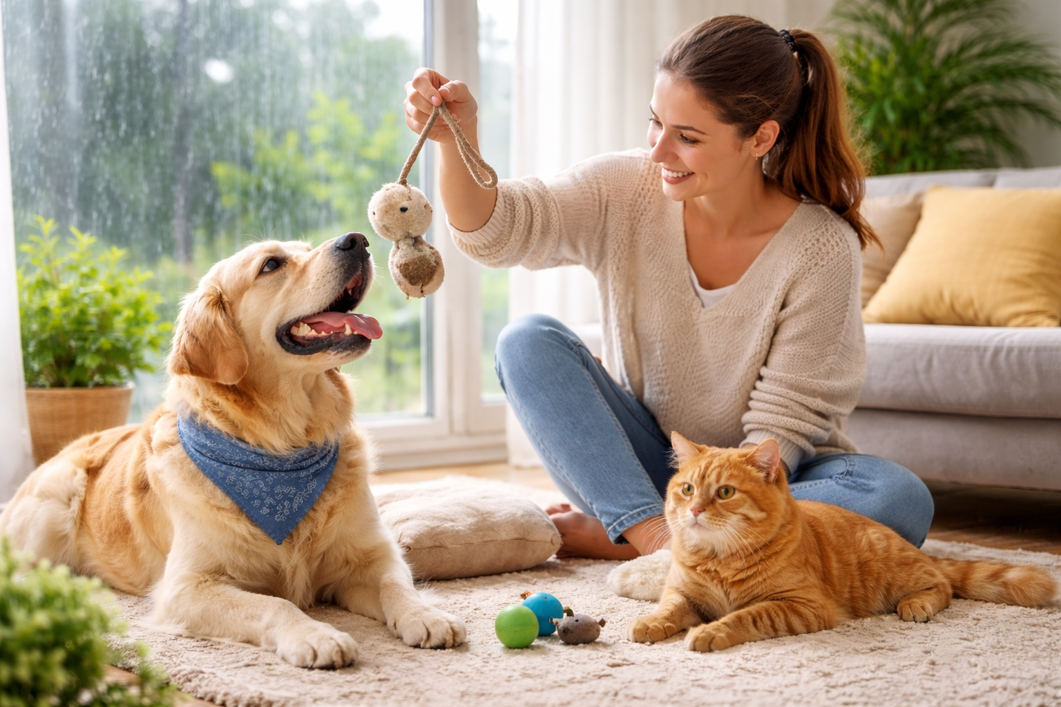 Pertama, ajak hewan bermain meskipun cuaca kurang mendukung. Aktivitas ringan dapat membantu meningkatkan energi.